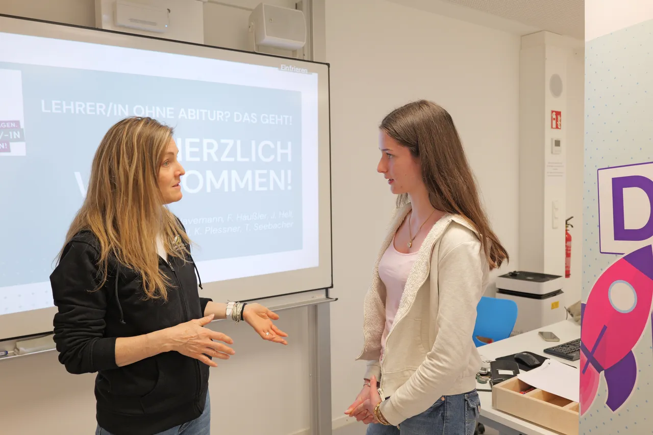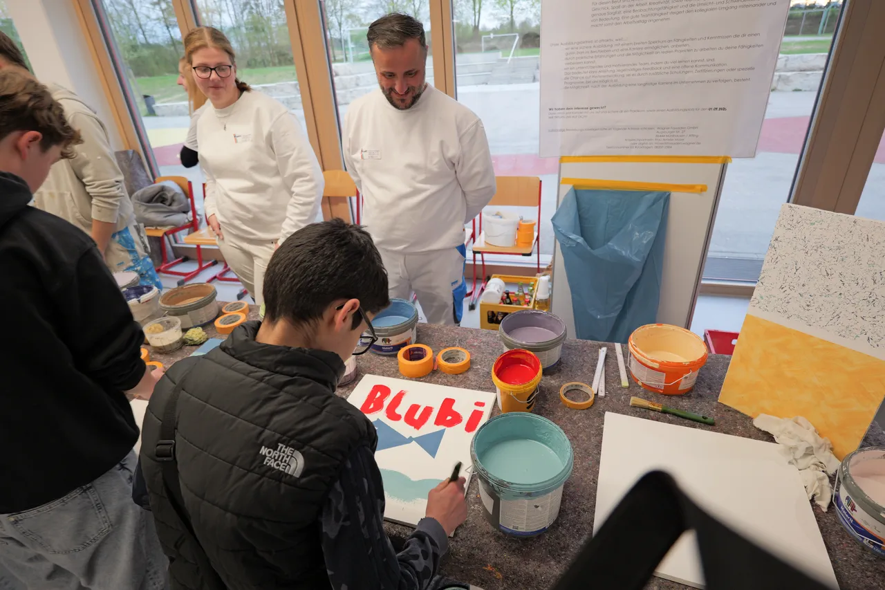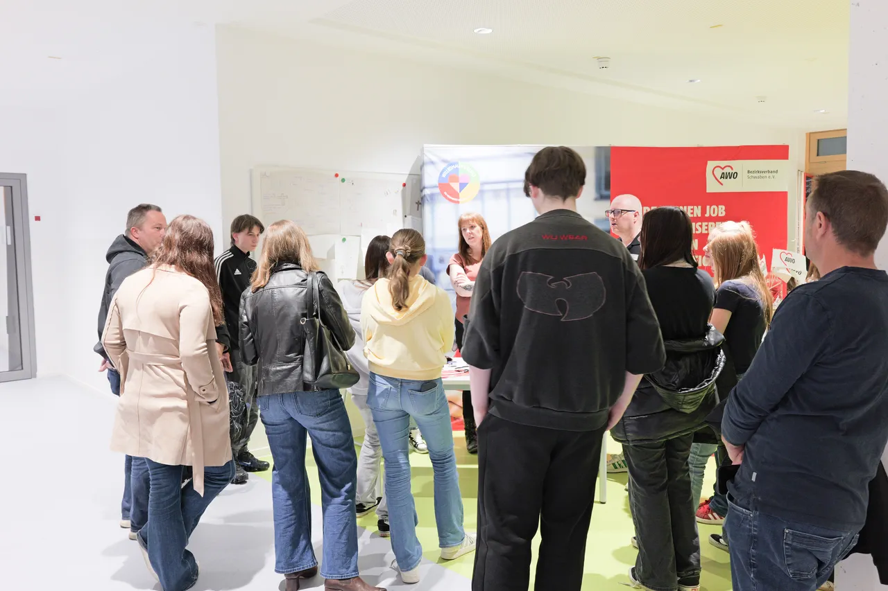 Besonderes Highlight: „Back to School“ Ein echtes Erfolgskonzept war der Besuch ehemaliger Schüler, die gemeinsam mit ihren Ausbildungsbetrieben zurückkehrten. Sie berichteten auf Augenhöhe von ihrem Arbeitsalltag und zeigten unseren Jugendlichen, was nach dem Abschluss alles möglich ist.